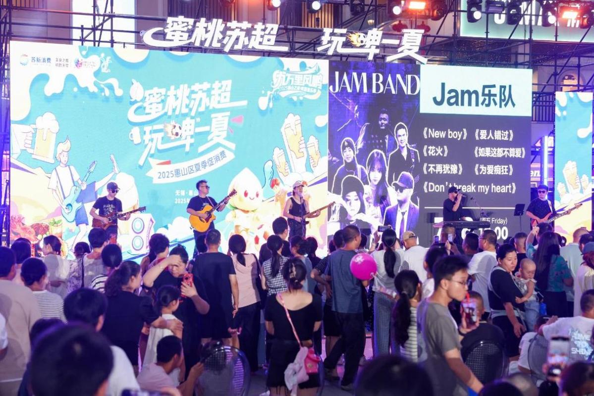 7月18日,当周末的夜幕降临时,伴随着开场表演“燃动夏夜”的鼓点,“蜜桃苏超・玩‘啤’一夏——2025惠山区夏季促消费活动”在无锡市惠山区火热启幕。啤酒的清爽甘洌、音乐的激情澎湃、美食的馥郁香气与“苏超”足球的热血豪情在此交融,让惠山的夏夜成为消费活力炽热的舞台。