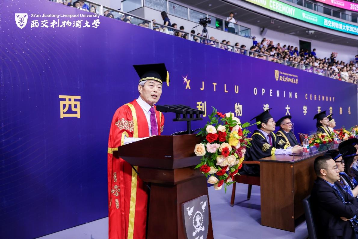 西交利物浦大学校长、中国科学院院士陶文铨教授在致辞中首先感谢了学生与家长对学校的信任,并特别阐述了西浦所倡导的“研究导向”教育:致力于引导学生培养问题意识、学会搜寻与整合知识并解决实际问题。他指出,在西浦,做研究并非遥不可及,而是每位同学都可触及的日常。陶校长勉励新生静心体验这一独特教育模式,并立志为国家科技创新做贡献。