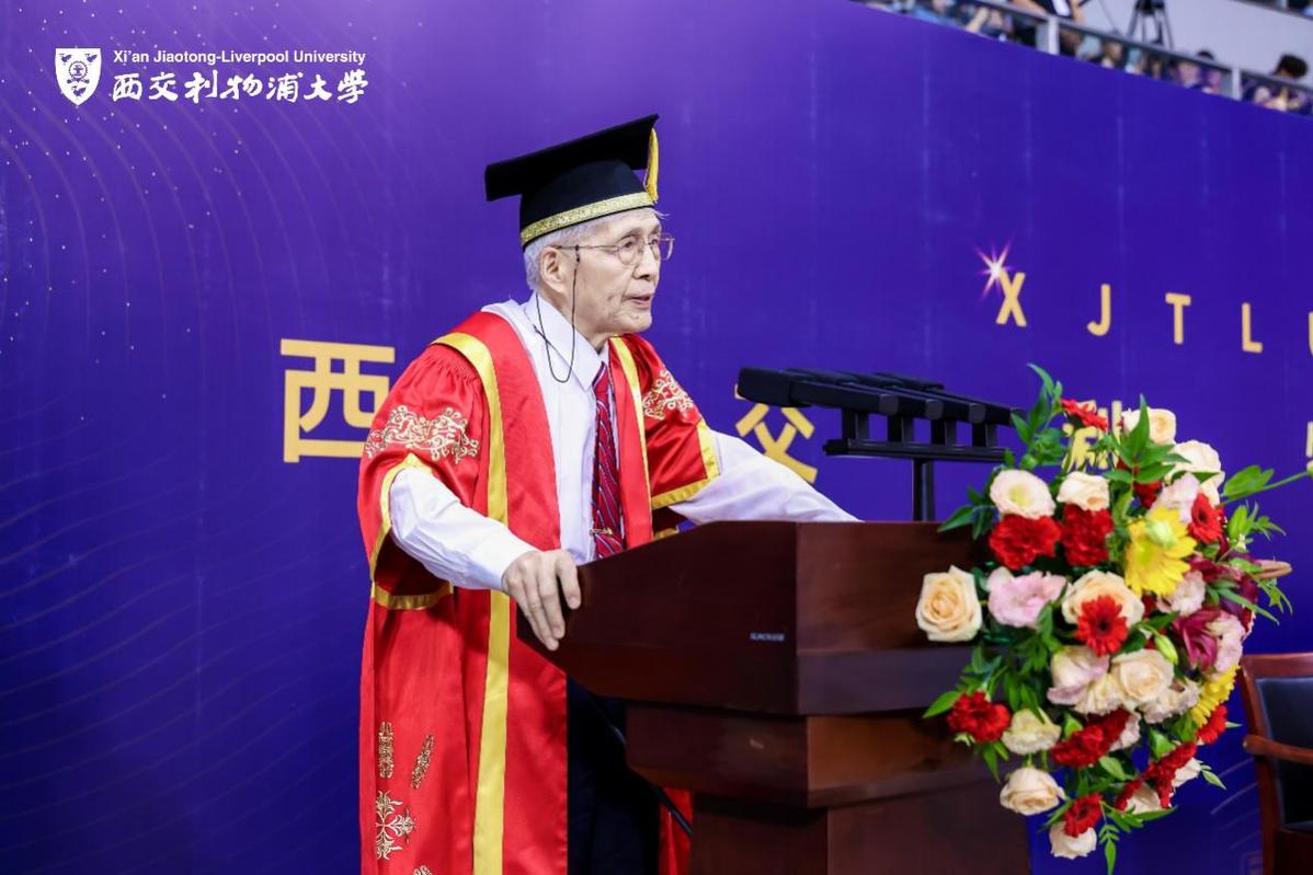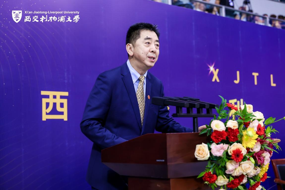 西安交通大学党委常委、副校长洪军教授在致辞中高度肯定了西交利物浦大学以“学生为中心”办学理念,西浦“让工科思维与人文素养碰撞”,并“深耕本土化与国际化共生”,既有全球顶尖师资与课程体系,又有产业导师制度对接中国产业需求。他对西浦学子提出期望:“以志存高远锚定方向,把个人理想融入国家发展与人类进步的需求,成长为有理想、有本领、有担当的新时代青年。”