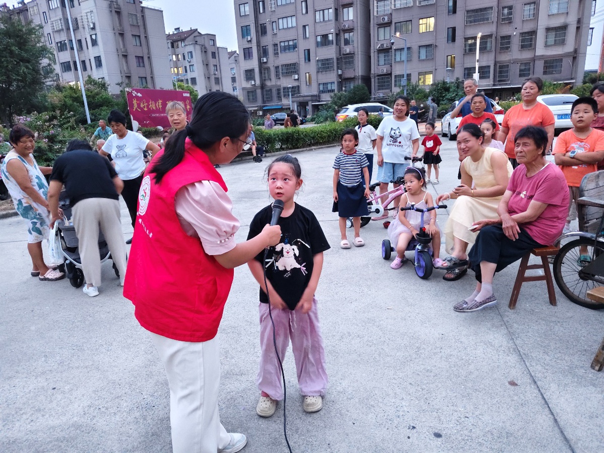 老一辈摇着蒲扇,孩子们追逐嬉笑,伴随放映机点亮的夏夜,阅读推广志愿者穿梭其间。印着推荐书目和阅读倡议的宣传单页被递到村民手中,通过现场有奖一问一答,“每天倡议阅读1小时”“乡村振兴必读书目”等信息被大家所熟知,知识的种子伴随着欢笑声悄然播撒。正如三圩埭村党总支书记仇陆叶所言:“露天电影是情感纽带,全民阅读是文明阶梯,两者结合让文化建设有了烟火气。”