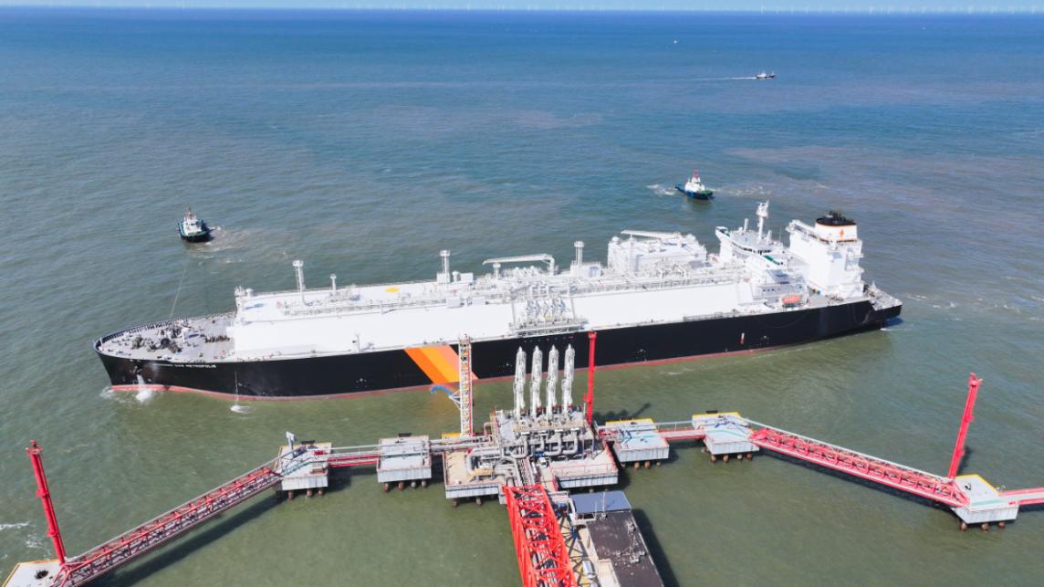 今年6月,加拿大液化天然气首次实现对外出口,8月7日,首船加拿大LNG运抵江苏LNG接收站,这也是该站自2018年接卸中俄能源合作亚马尔项目首船LNG后,再次在中国拓展国际能源合作版图中发挥关键枢纽作用。目前,该站共有6座LNG储罐,总罐容108万立方米,单日最大气化能力为3900万立方米,在夏季用电高峰和冬季供暖季期间,可精准响应需求,连续冲峰保供、套接6船进港,满负荷工况下,全年能够支持江苏全省近30%的天然气供应,成为服务国家战略的重要支点。