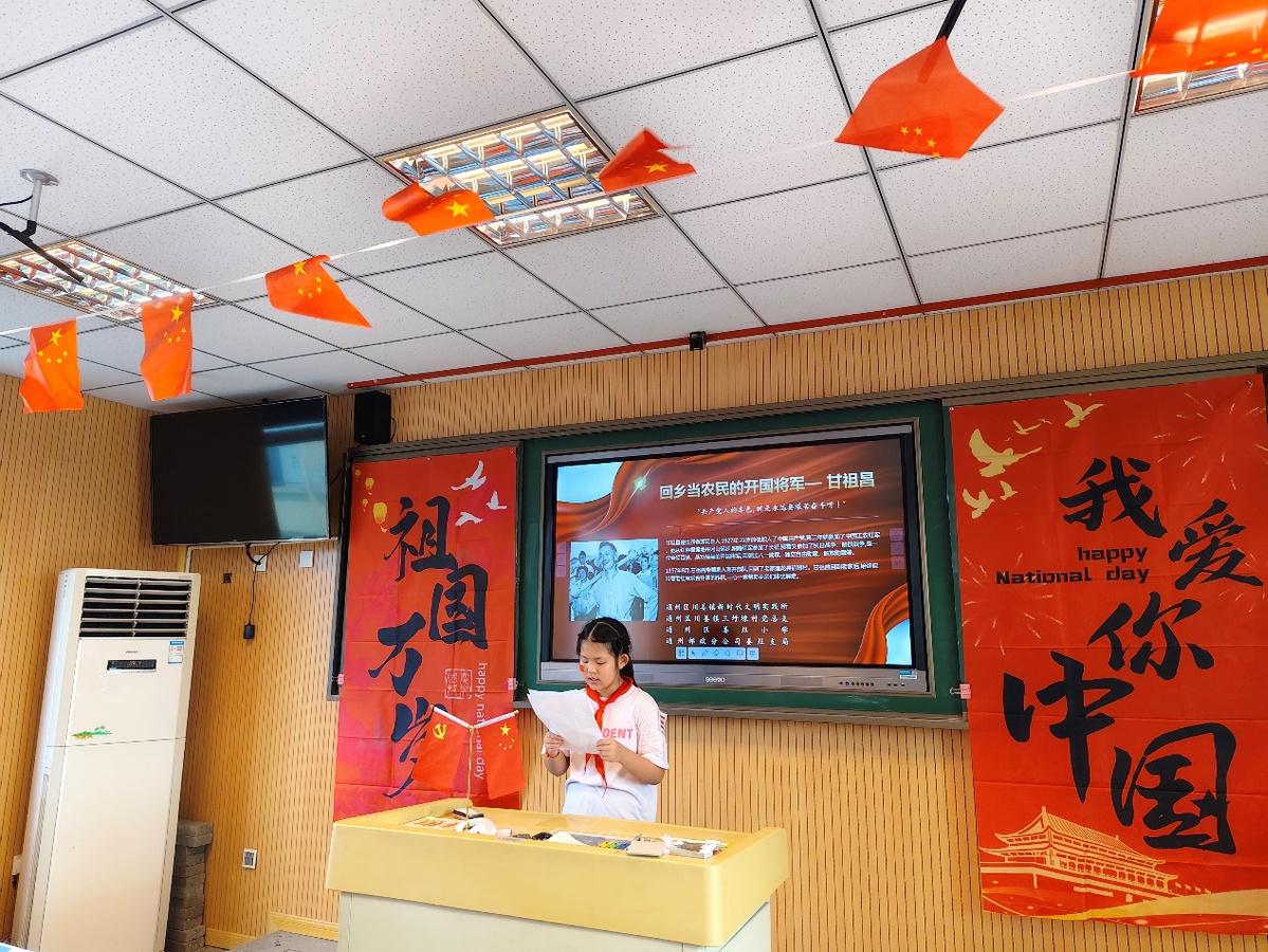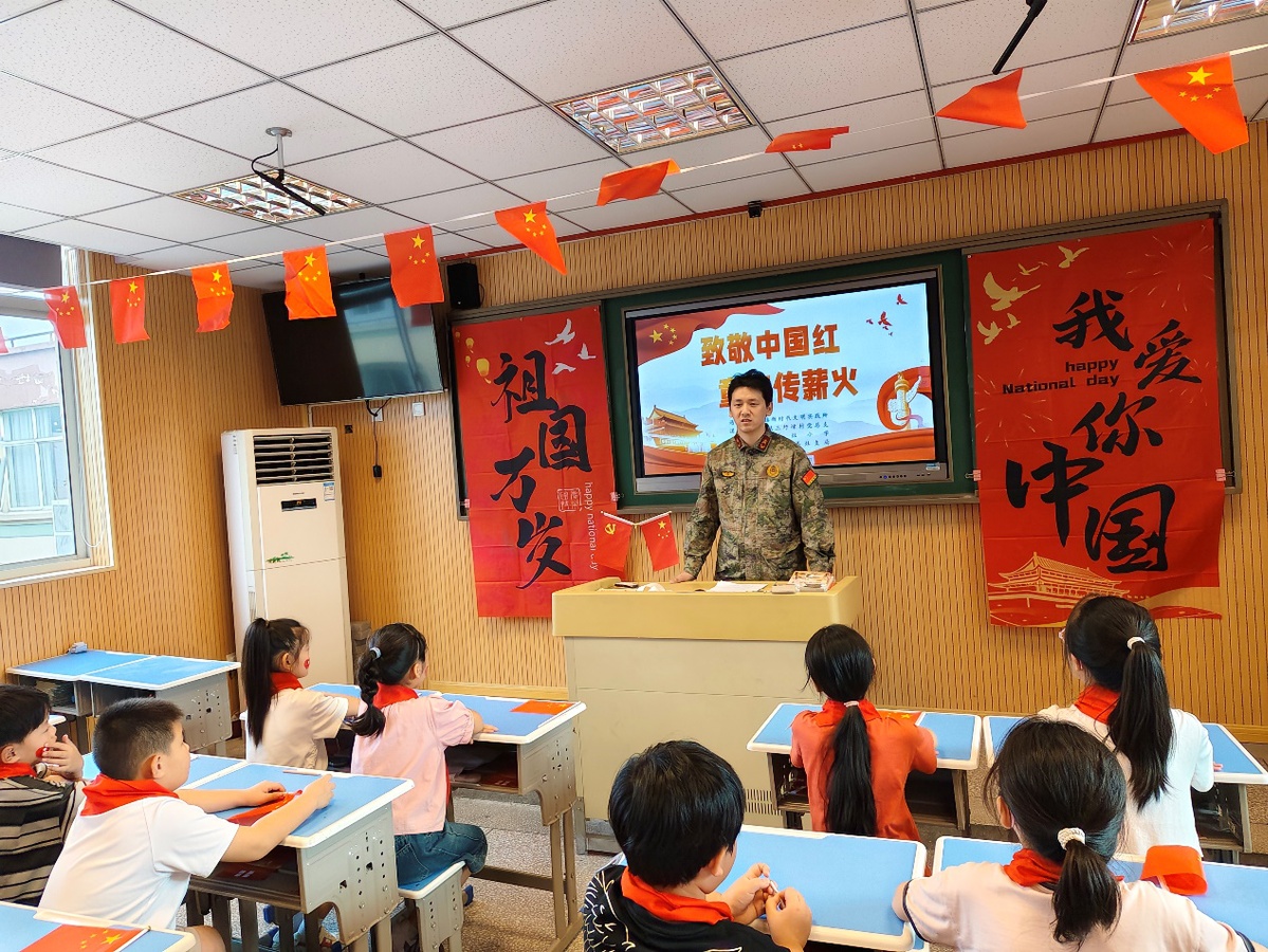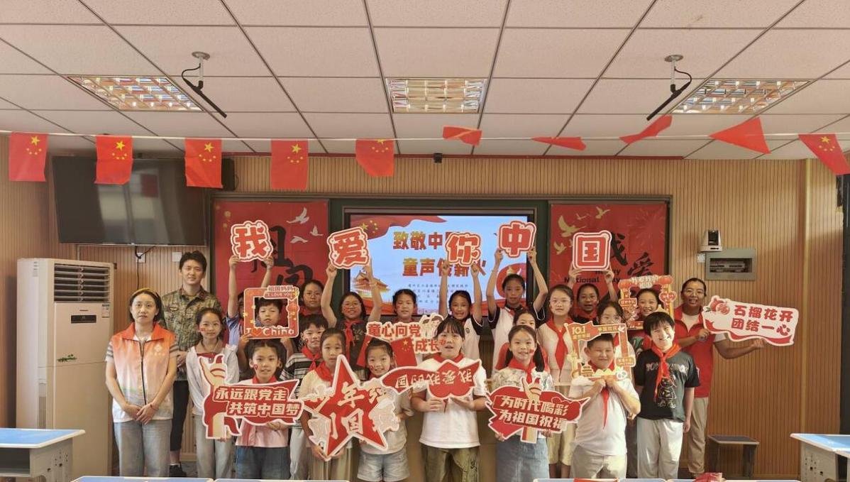 为庆祝中华人民共和国成立76周年,弘扬爱国主义精神,培育新时代少年家国情怀,近日,南通市通州区川姜镇新时代文明实践所携手川姜镇三圩埭村走进通州区姜灶小学开展以“致敬中国红 童声传薪火”为主题的实践活动。活动通过校、社、企三方联动,以沉浸式、互动化、多维度的创新形式激发青少年的爱国热情,传递红色基因。
