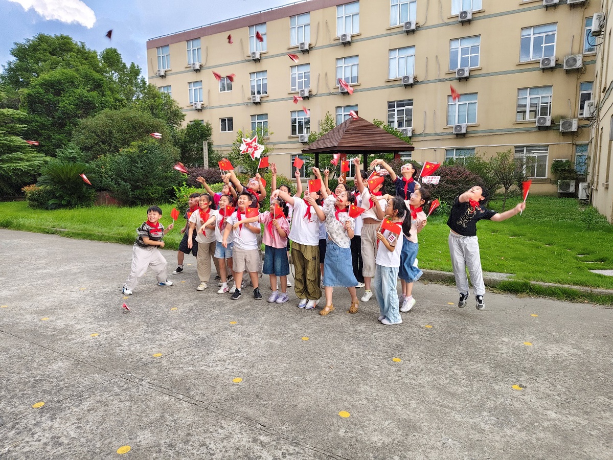 “我和我的祖国,一刻也不能分割……”全体手执五星红旗共唱《我和我的祖国》,悠扬歌声回荡会场。随后,学生们在纸飞机上写上对祖国母亲的祝福,放飞汇聚希望与梦想的纸飞机于祖国蓝天。此刻,孩子们胸前的红领巾是向先烈们前赴后继的牺牲致敬,也是向为共产主义事业奋斗终身的英雄们最深情的告白;那追逐纸飞机的眼神中有对蓝天碧云的欣喜、亦有对星辰大海的渴望!正如三圩埭村党总支书记仇陆叶强调:“三方合作打破了传统教育边界,形成了资源互补、合力育人的良好格局,让爱国主题实践更接地气、更具温度。”