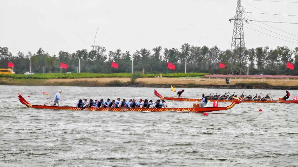 10月18日,空中交响乐仍在继续,在不远处的蒹葭湖,龙舟赛选手们挥桨击水,船桨划破镜面般的湖面,溅起的水花与岸边的芦苇荡相映成趣,将“大运河文化带”的生态之美具象呈现。来自江苏省内的16支龙舟队、432名选手齐聚湖畔,在铿锵的鼓点与飞扬的浪花中,展开一场力量与协作的角逐。作为推动“文体旅融合”的重要载体,这次赛事充分展现了龙舟运动百舸争流的竞技魅力。