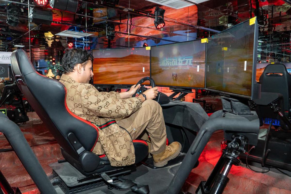 来自南非的上海交通大学留学生Kene Baneka难掩激动之情:“《三体》是我最喜欢的科幻小说!我去年刚看完《三体》,然后就沉迷其中了。我从未想过能亲眼见到并体验这些场景。进入飞船、驾驶操作、和队友一起射击……体验感十足,绝对是满分!”