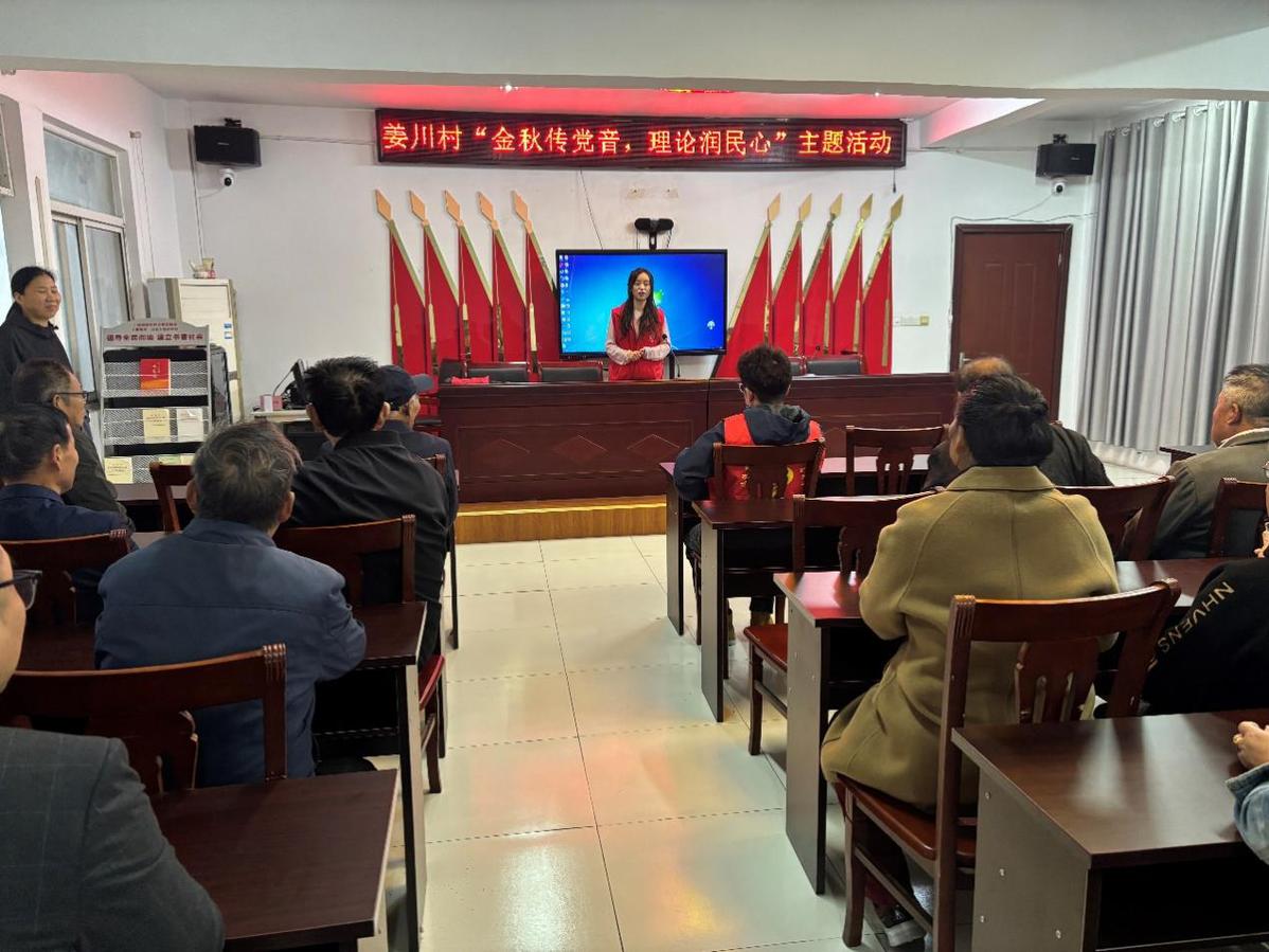 为推动党的创新理论“飞入寻常百姓家”,姜川村理论宣讲员巧妙地将抽象的创新理论转化为贴合本村实际的“大白话”,围绕“乡村振兴”、“养老保障”、“基层治理”等与老年人生活息息相关的话题展开生动讲解。宣讲结合姜川村近年实施的新江海河拓宽、川姜花苑建设、水星一期等民生实事,以及城乡居民养老保险金逐年上调的惠民政策,进行了深入浅出的解读。尤其是将村里的“有事好商量”协商机制生动阐释为“共建共治共享”的治理模式和“人民当家作主”的生动实践,引发了在场老党员和村民代表的强烈共鸣。大家纷纷点头认可,表示“跟着政策走,日子有奔头!” 此次宣讲不仅是党的声音的传递,也是“全民阅读”的延伸,让书本理论与政策精神化作老人们听得懂、能领会的身边故事。