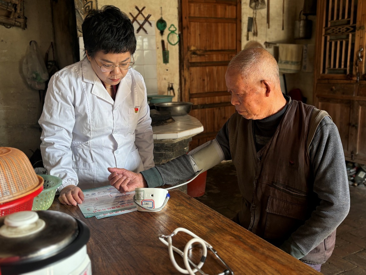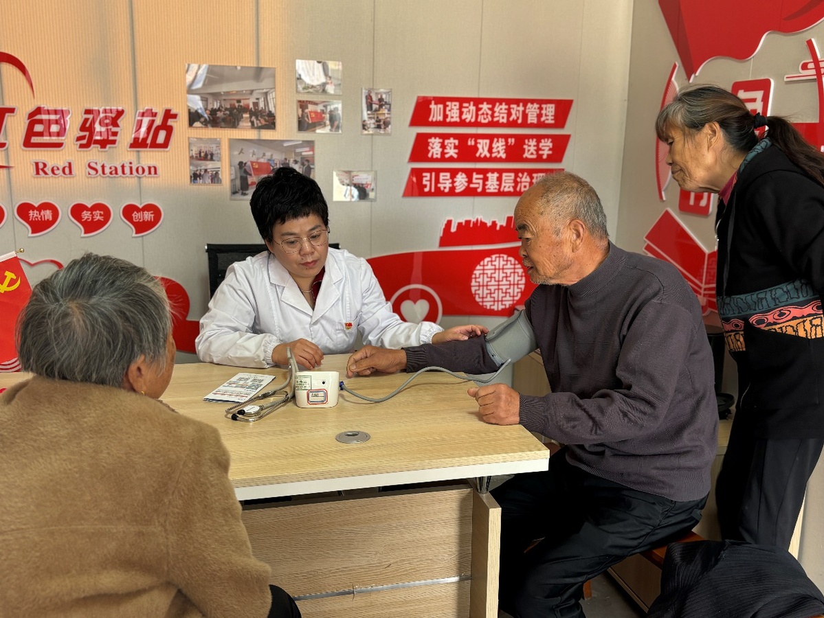 为解决部分高龄、行动不便的老党员和空巢老人“出门难、看病远”的实际问题,本次系列活动特别开辟了一条健康“绿色通道”——由党员沈医生提供上门义诊服务。在姜川村志愿者的带领下,沈医生走进到老人们家中,细致地为老人们测量血压、血糖,进行心肺听诊,并耐心解答各种健康疑问。“您这血压控制得不错,降压药一定要按时吃。”沈医生一边记录检查数据,一边轻声叮嘱。这份“送上门”的健康守护,不仅精准对接了老人们的医疗需求,更以党员的初心和担当,将党组织的关怀直接送到了老人们的心坎上。以实际行动践行“民有所呼、我有所应”,打通了健康服务的“最后一米”。