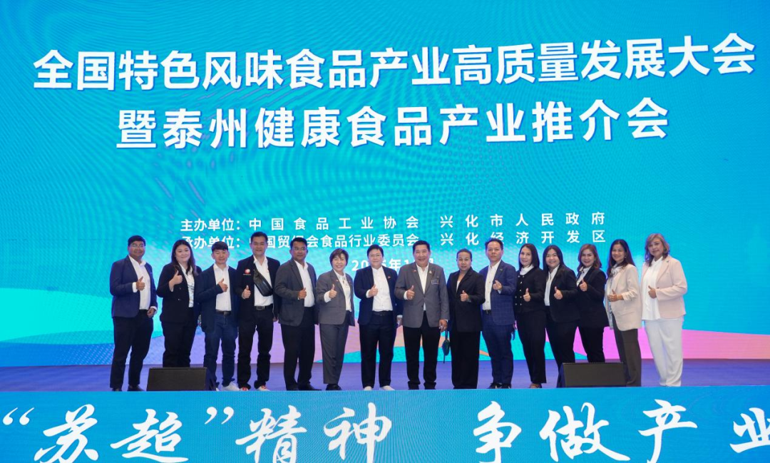 12日上午,全国特色风味食品产业高质量发展大会暨泰州健康食品产业推介会在兴化隆重举行。泰国东盟企业家协会主席班亚·卜亚、泰国商业发展部主任桑提蓬黄丹塔特、泰国中小企业促进局副局长阿皮拉迪·卡奥迪亚、泰国中小企业银行副行长楠塔瓦·赞拉提等作为特邀嘉宾出席。