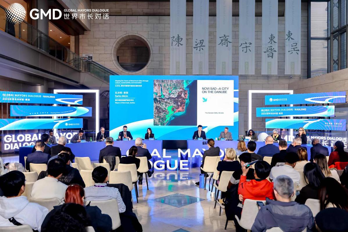 11月21日,世界市长对话·南京活动在南京六朝博物馆正式举办。对话以“以文化、绿色与智慧开创滨水城市可持续未来”为主题。来自世界各地的市长及城市代表分别介绍了其城市的发展现状和建设理念,并在此后就世界滨河城市共同面临的问题与挑战展开交流讨论。对话结束后,与会代表正式发布《大河城市发展南京共识》(以下简称《共识》),标志着全球滨水城市合作迈进新的阶段。