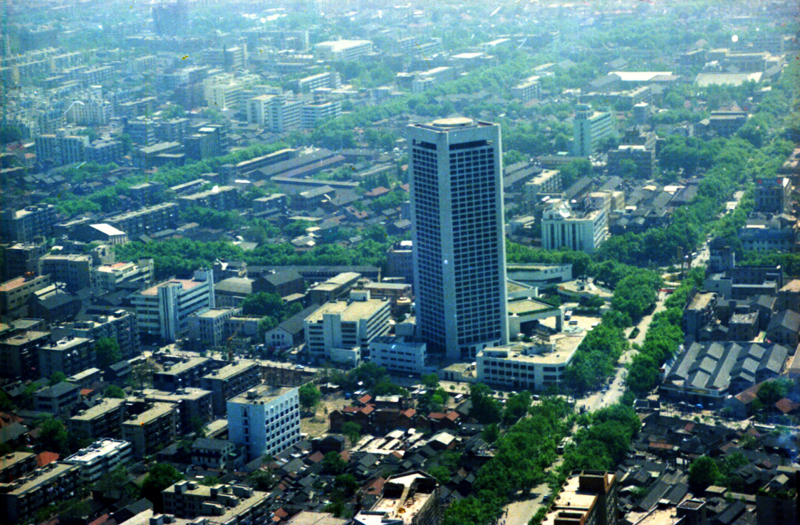 为了给当时的南京城“画像”,声像技术室的职工胡祖瑞、周善宝等人登上军用飞机,在高空推开舱门,对新街口金陵饭店、鼓楼广场等进行航拍…一座城的蜕变轨迹,都收藏进了快门声里,高层建筑的出现也刷新了城市的天际线,成为南京走向现代化的最直观符号。