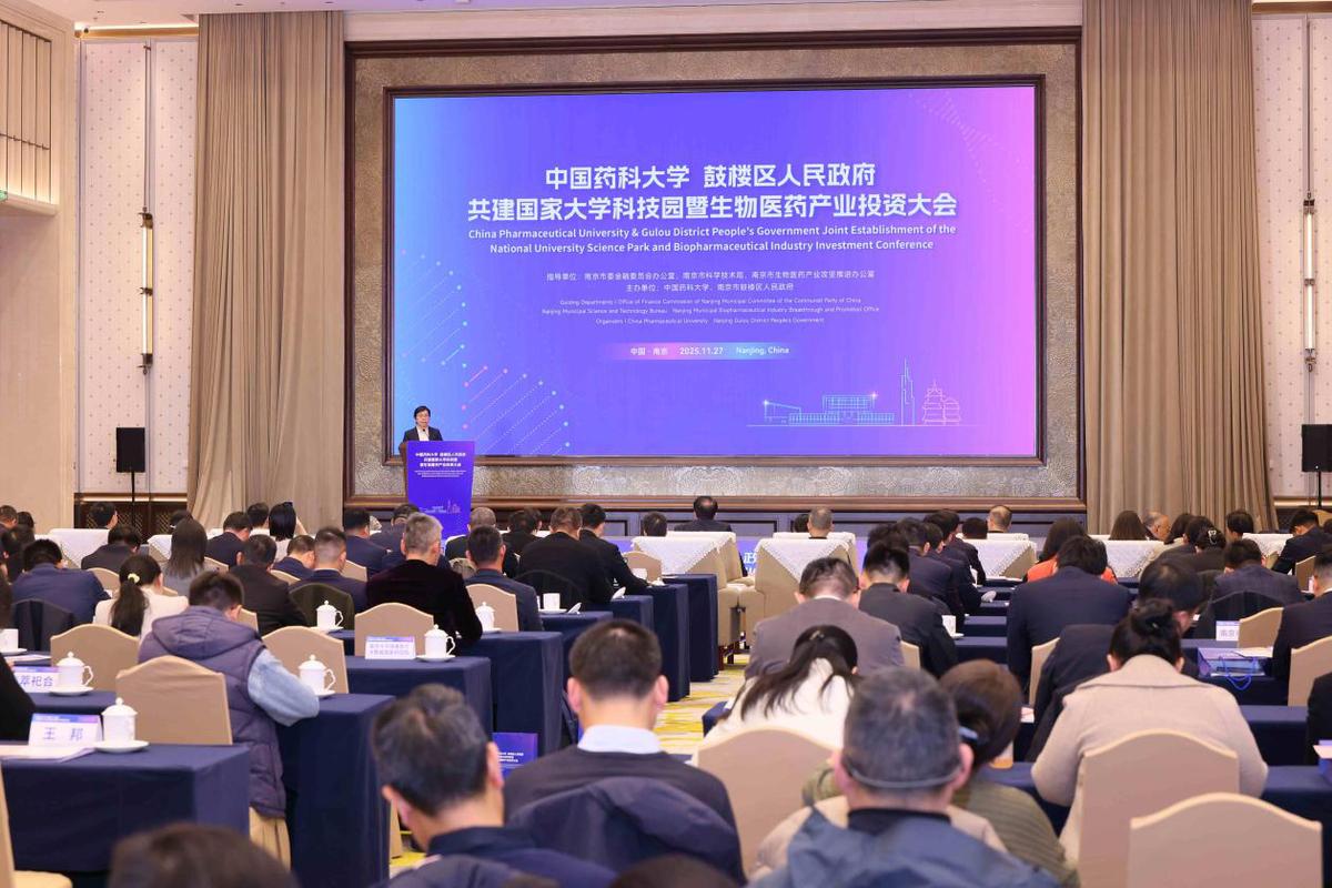 11月27日,中国药科大学与南京市鼓楼区共同创建国家大学科技园暨生物医药产业投资大会召开。会上,20个产业项目签约落地鼓楼区。