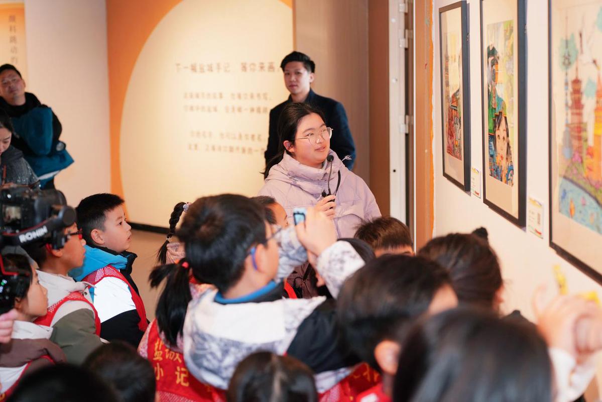 趣味互动与沉浸式体验同步升级。“小小参展人说”公益讲解活动温情开启,参展小选手亲自解读作品创意,搭配《我的盐城手记》线上云导览。观众扫码即可聆听专属讲解,感受青少年心中缤纷多彩的盐城新形象。盐美“名画NPC”限定上线,微剧本游戏《行走的艺术——五福奇遇记》全新升级,五大趣味环节让观众意犹未尽,边逛展边玩游戏,文化体验感拉满。