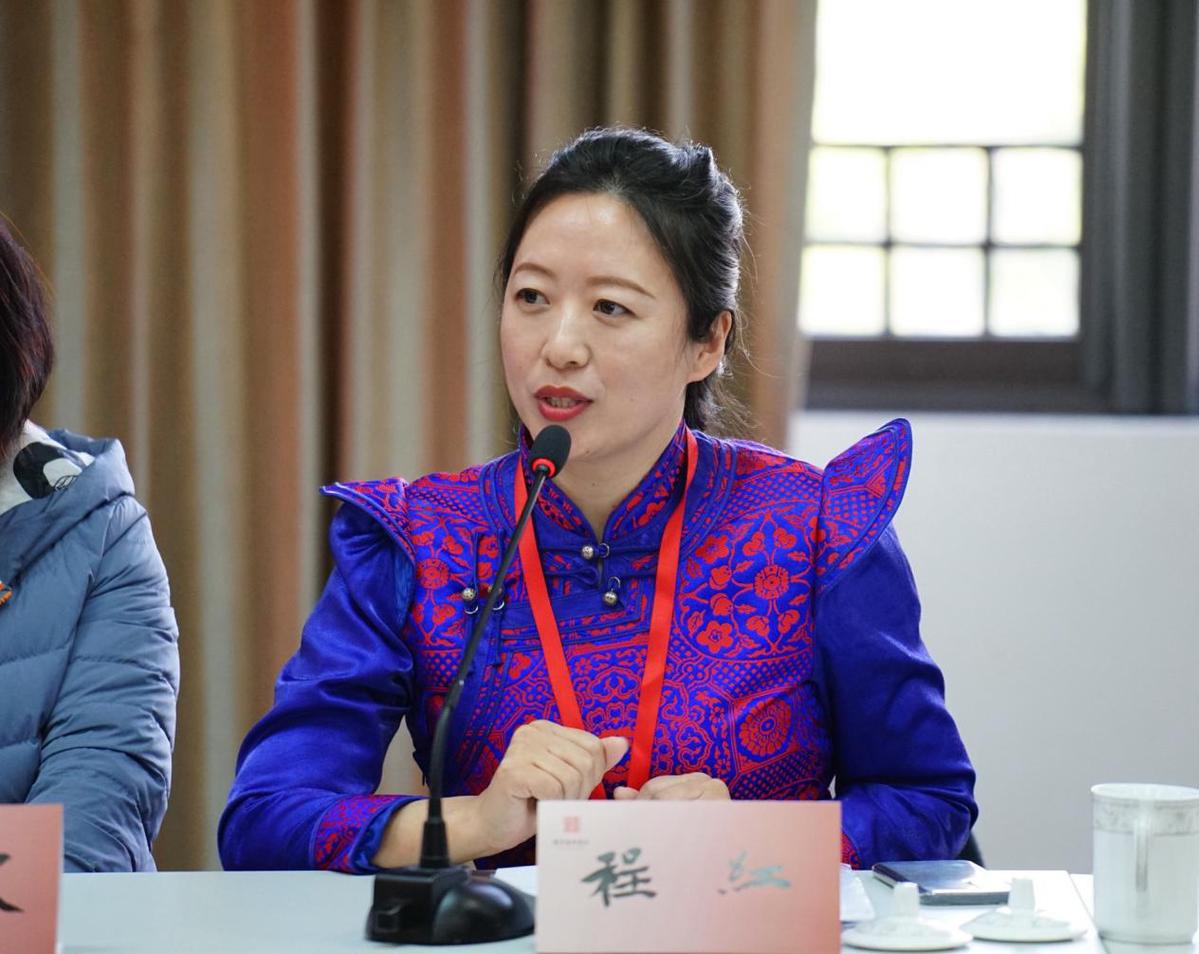 内蒙古通辽市科尔沁左翼中旗宝龙山中学教师程红在开班仪式上作表态发言,并号召大家珍惜来之不易的学习机遇,提升艺术理论的认知水平,创作与时俱进的艺术精品,肩负起传承和发扬中华民族传统文化的责任。