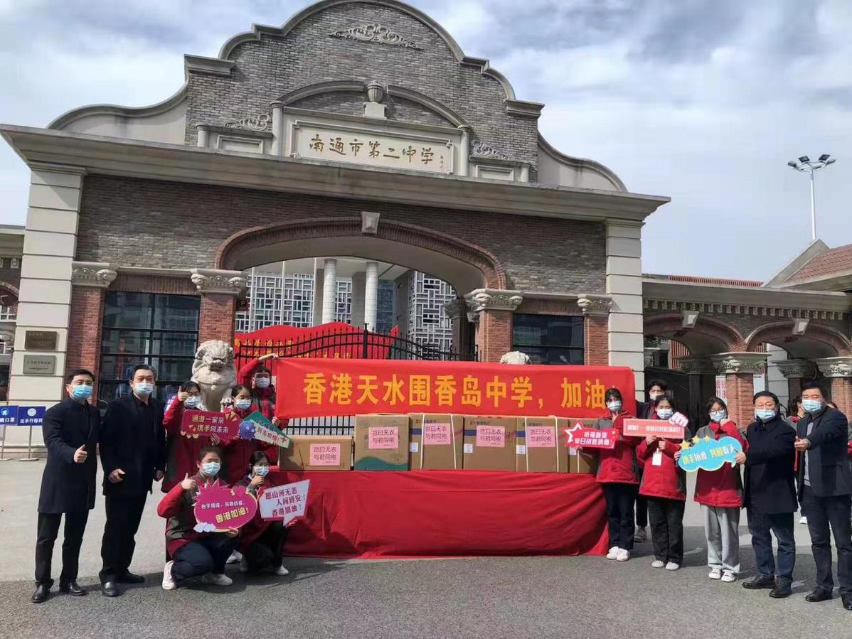 香港疫情牵动人心,港澳处经多方协调联系,促成南通市第二中学向香港姐妹学校天水围香岛中学捐赠活动,总计捐赠4500份抗原快速检测盒、1000盒连花清瘟胶囊和2400只N95口罩等防疫物资。
