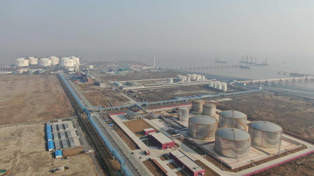 而在阳光岛东南角,如东第三座LNG接收站项目——协鑫汇东LNG接收站也已全面动工。这个项目是江苏省内首次实现特大气源完全自主、天然气有效供给完全自主、LNG接收应用完全自主的重大项目,一期总投资约50亿元,规划建设1座LNG卸船码头、1座装船码头、2座20万立方米容积的LNG储罐及配套工艺和公用工程设施,设计年接卸规模为300万吨(约40亿方天然气)。目前,该项目正在库区桩基施工中,今年计划完成储罐气升顶作业。