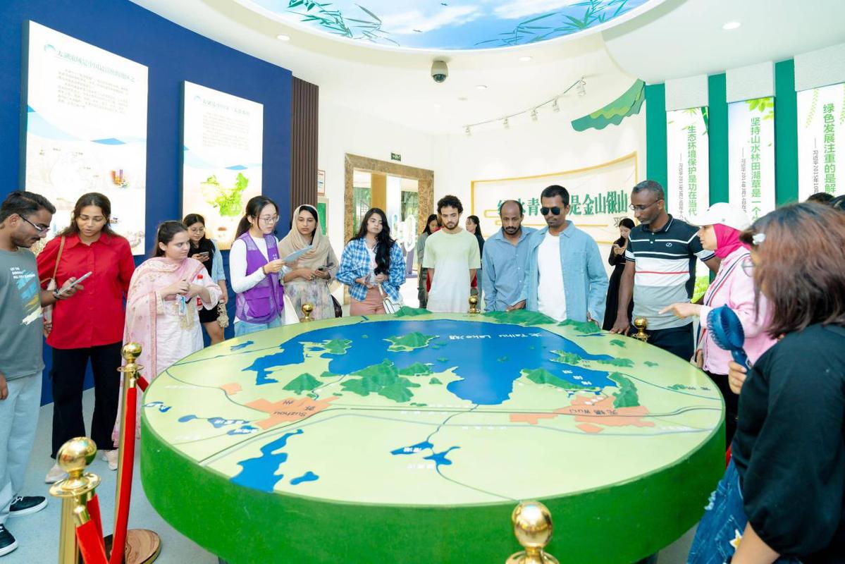 此外,江南大学还联合无锡市水利局共建 “来华留学生中国国情教育基地”,通过专题讲解、实地参访,让留学生在 “知水、懂水、爱水” 中读懂无锡的生态智慧与发展活力。江苏大学俄罗斯籍留学生安喜看着眼前的青山绿水,连连拍照,“无锡给我留下了很深的印象,整座城市与水相邻,这里的人们为保护水做了很多努力,它有着江南独特的韵味。”安喜说道。