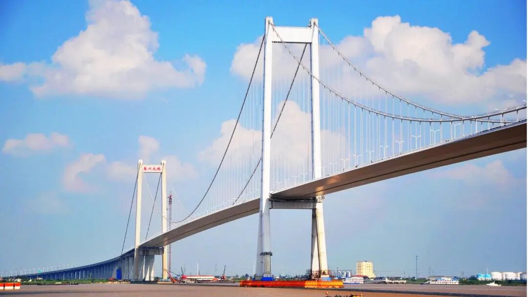 泰州长江大桥位于江苏泰州与镇江、常州市之间,是世界首座三塔两跨悬索桥,也是江苏省“五纵九横五联”高速公路网和国家《长江三角洲地区现代化公路水路交通规划纲要》中的重要组成部分,在长江三角洲地区和江苏省的高速公路网络中起着重要的联络和辅助作用。中铁宝桥扬州公司承担了泰州长江大桥钢桥梁和钢塔的制造。