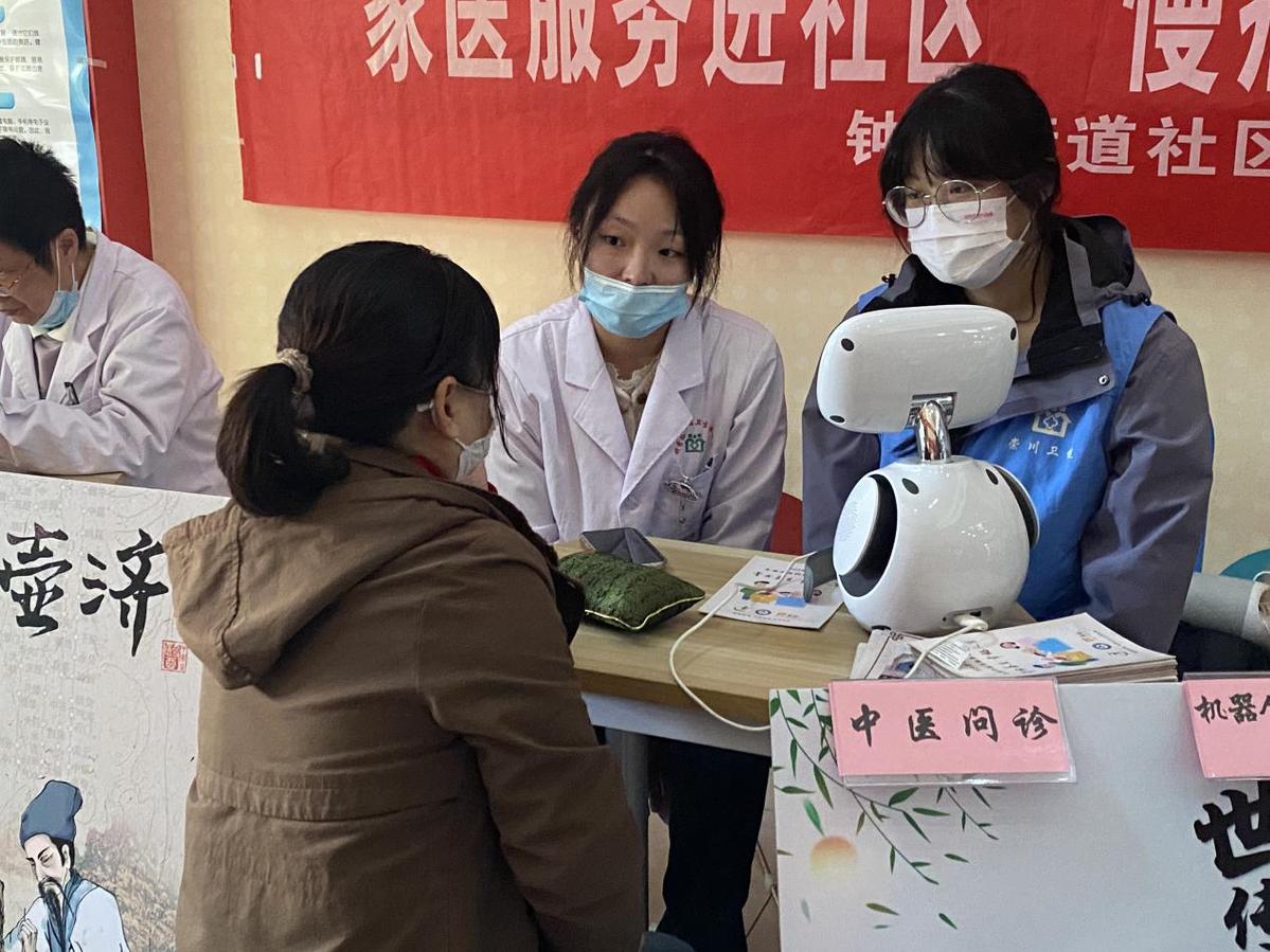 专业医生现场坐诊,提供视力检查、口腔检查、体能检测及健康咨询,为老年人提供了一站式的健康管理服务。除了常规的测量血压和用药指导外,社区卫生服务中心引入的AI机器人中医检测设备吸引了众多老年人体验,现代科技与传统医学的结合,让健康筛查和养生知识科普变得更加智慧与便捷。