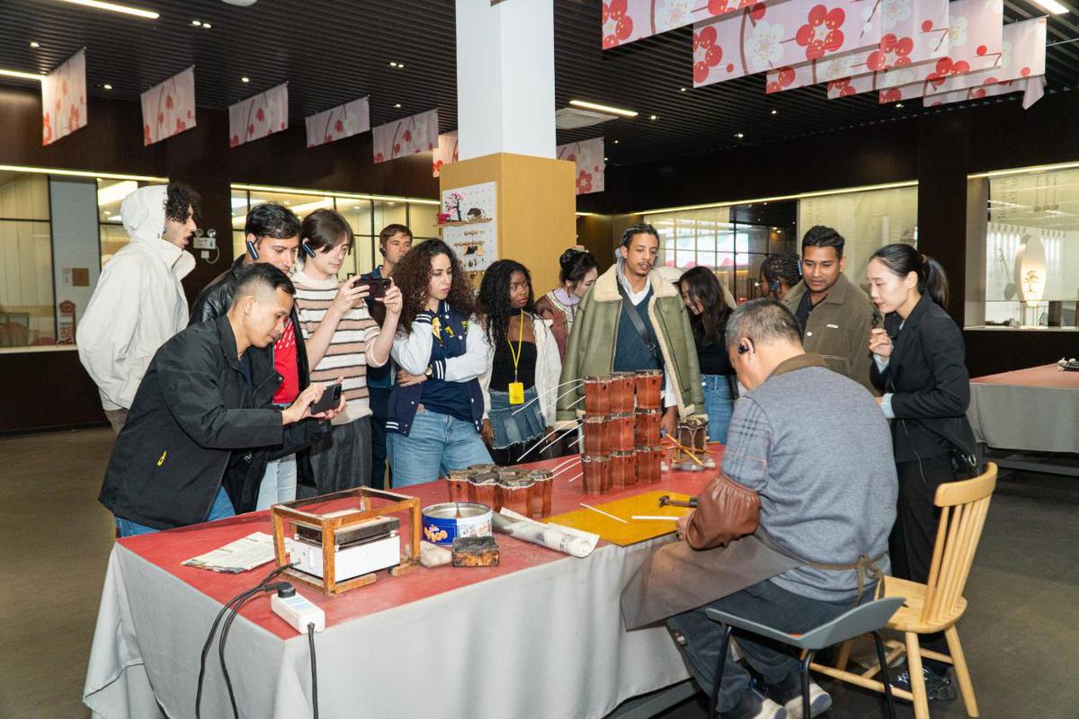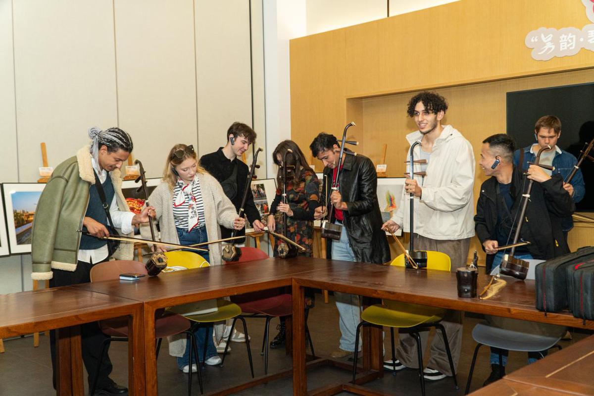 来自巴基斯坦的Ali Sajjad(阿里)对梅村二胡产生了浓厚兴趣。“我很高兴还能在新吴区看到这么传统的乐器制作方式,这让我觉得既熟悉,又新鲜。”他表示,虽然二胡与西方弦乐器如小提琴在演奏方式上有相似之处,但在结构与音色上各具特色。“二胡的演奏动作和小提琴有点像,都是通过弓弦摩擦发声,但二胡是竖着拉的,小提琴是横着拉的。二胡的琴身由木头和蛇皮制成,这种材料的质感和声音都非常独特。”阿里认为,二胡所体现的,是中国人对音乐传统的坚守与创新。传统乐器作为历史与民族文化的物质载体,通过艺术形式促进不同文明间的理解与对话,具有跨文化交流价值。“让我印象深刻的是,中国至今仍在传承这样的传统乐器,而且很多地方把传统与现代结合,创造出新的音乐形式。”他感慨地说,“从古至今,中国人不断打磨技艺、让音乐不断进化,但同时又保留了传统的根。这种精神非常值得学习。”