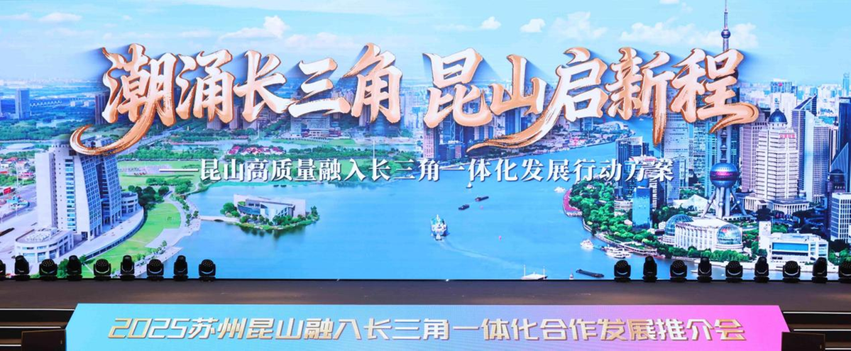 11月12日,2025苏州昆山融入长三角一体化合作发展推介会在上海举行。