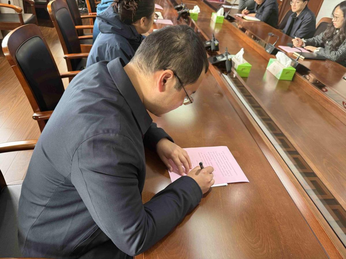 分享会的温馨余韵未了,一场面向未来的“新时代家规”讨论又热烈展开。干部职工与家属们围坐一起,共同商议如何为家风注入时代内涵。“我们商定,家人绝不插手我的工作事务,不在微信群里收发红包。”青年员工小曹分享了她的家庭新约。随后,一份份《廉洁家风承诺书》在夫妻、子女的共同见证下郑重签署,将单位的严管与家庭的厚爱紧密相连,共同编织着一张坚实的“护廉网”。