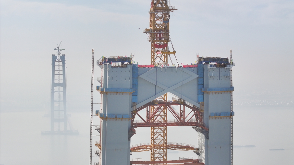 张靖皋长江大桥北主塔高350米,是世界最高悬索桥索塔。这座雄峙长江之上的超级工程,承载着 “中国桥” 突破 2000 米跨径大关的历史使命,将一举创下 “6 项世界之最”:世界最大跨度悬索桥、世界最高悬索桥桥塔、世界最长高强度主缆、世界最大地连墙锚碇基础、世界最大连续长度钢箱梁、世界最大位移量伸缩装置。其采用的世界首创“钢箱 — 钢管约束混凝土”组合索塔设计,更是桥梁工程领域的技术革新,彰显中国“智”造的硬核实力。