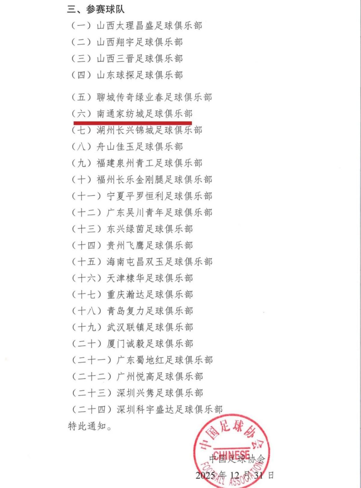 日前,中国足协发布《中国足球协会关于举办2026中国足球协会杯资格赛的通知》,南通家纺城足球俱乐部成功获得参赛资格,成为江苏省唯一一支参加本次资格赛的球队。他们将与来自全国各地的劲旅同场竞技,全力争夺晋级足协杯正赛的珍贵名额。