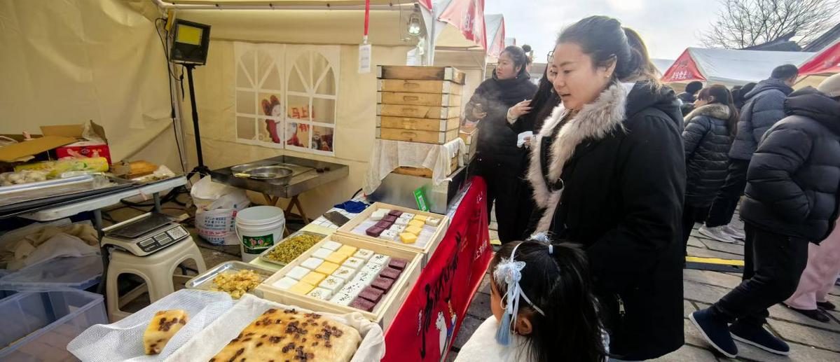 骐骥迎春,福满人间。红灯笼缀满古街巷,吆喝声里裹着糕饼香,2月1日,南通市崇川区唐闸北市景区的年货大集甫一开市,便唤醒了南通人记忆深处最鲜活的年味。
